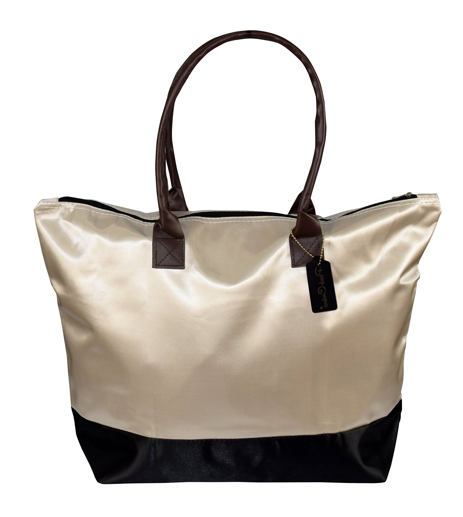 Get 50% Off Beige/Black Shoulder Tote Handbag with code TOTE50