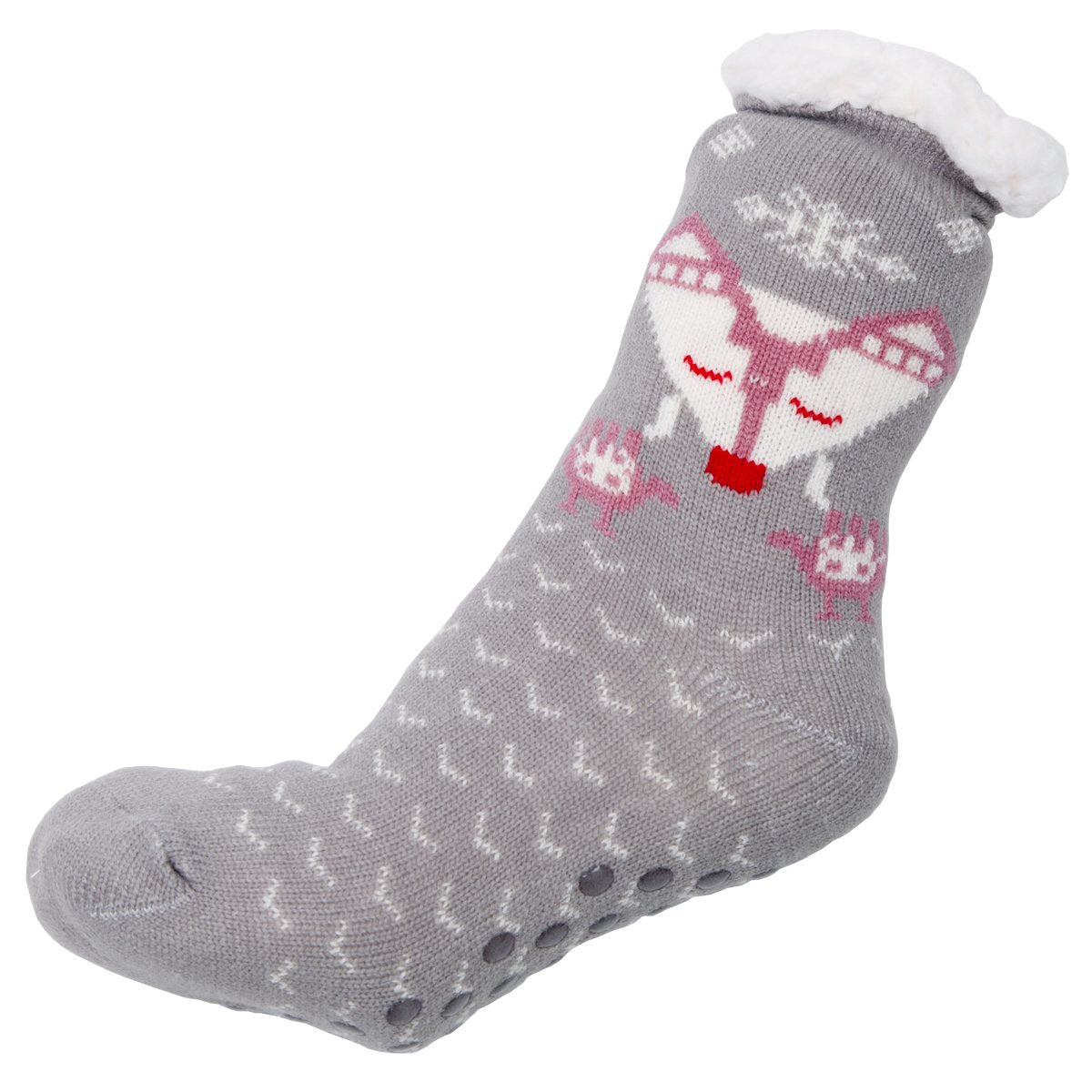 Winter Super Warm Cozy Knitted Sherpa Lined with Grippers Bootie Slipper Socks