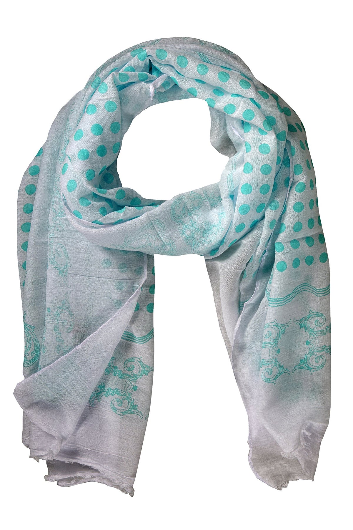 Add an effortless touch of elegance to your wardrobe with this lightweight pashmina scarf. Featuring a beautifully printed paisley border and playful polka dot center, it's the perfect wrap or shawl for layering throughout the seasons. Crafted from a breathable cotton-viscose blend, this versatile accessory offers a soft, airy feel and drapes beautifully. Whether you're traveling or dressing up a casual outfit, this stylish scarf brings comfort and sophistication to any occasion.
