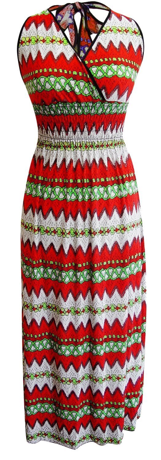 • The perfect striped chevron Spring or Summer Dress to Wear on a casual outing to the beach or a formal occasion! Halter self tie v-neck top and Elastic waist for the perfect fit.