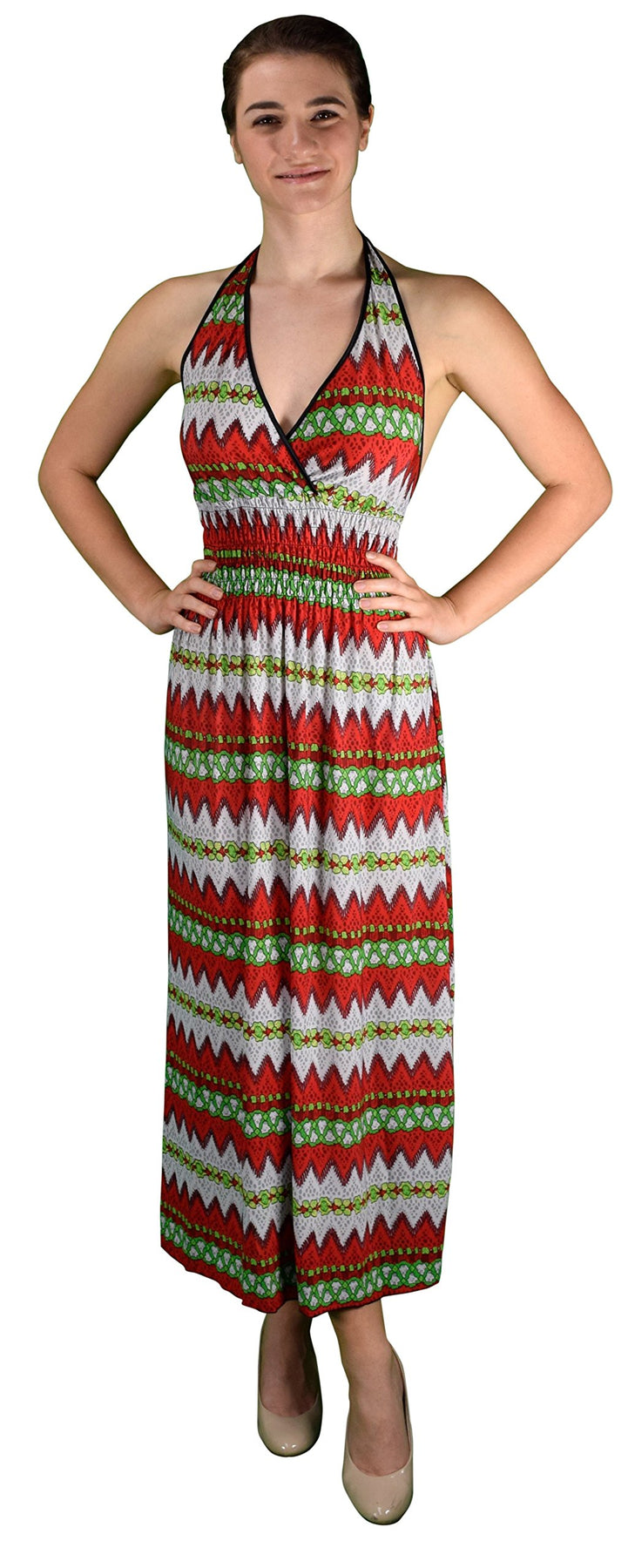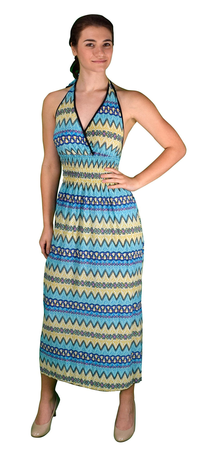 Show off your assets with this gorgeous maxi dress. The halter dress is gorgeous accentuating your curves and making you feel as great as you look. Compliments will come pouring in when seen in this comfortable light weight breathable fabric. As you walk down the street with your dress flowing in the wind people will notice the beautiful bright colors which are perfect for summer and spring months. If you are looking for that vacation dress to keep jaws dropping look no further this is definitely it.