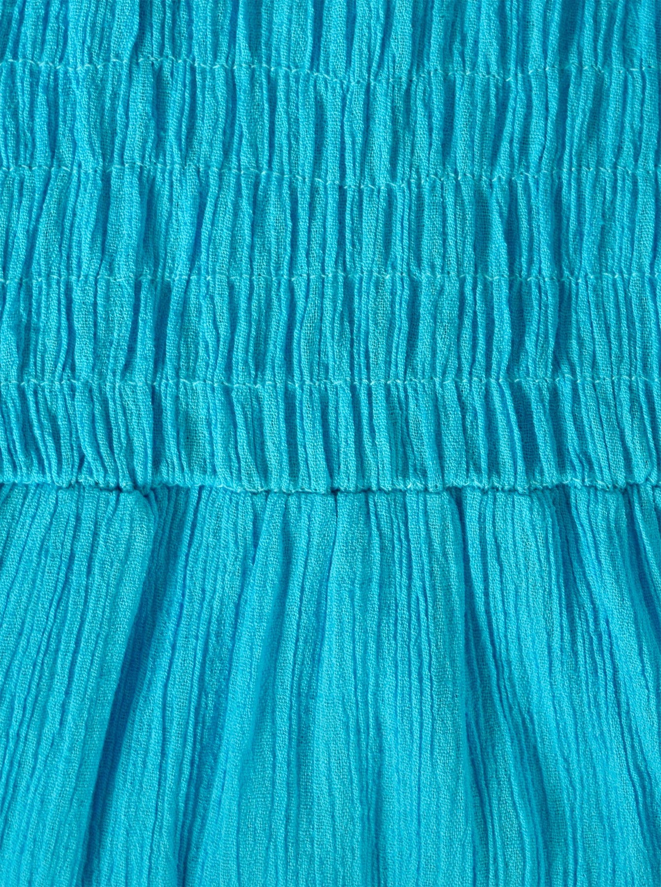 Gypsy Boho Cap Sleeves Smocked Waist Tiered Renaissance Maxi Dress (Medium, Turquoise)