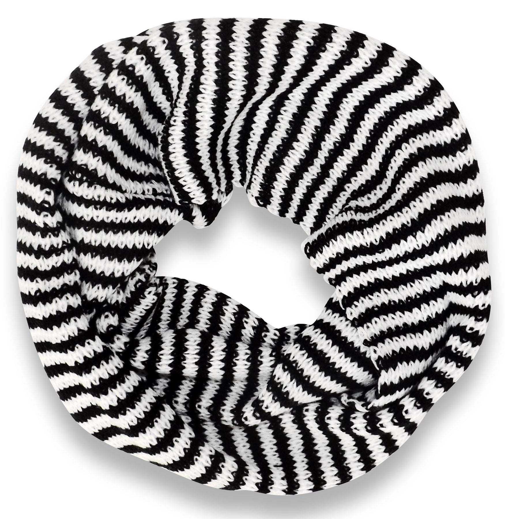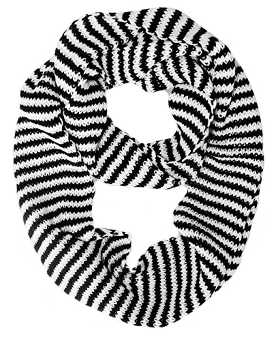 Warm Knitted Soft Light Striped Infinity Loop Scarf White and Black