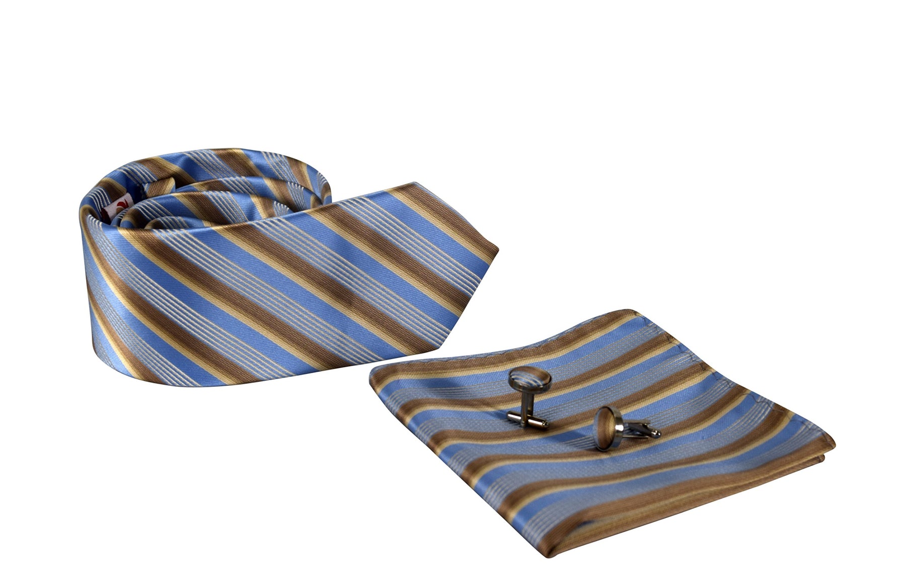 Luxurious Mens Silk Feel Stripe Necktie Cufflinks Handkerchief Set