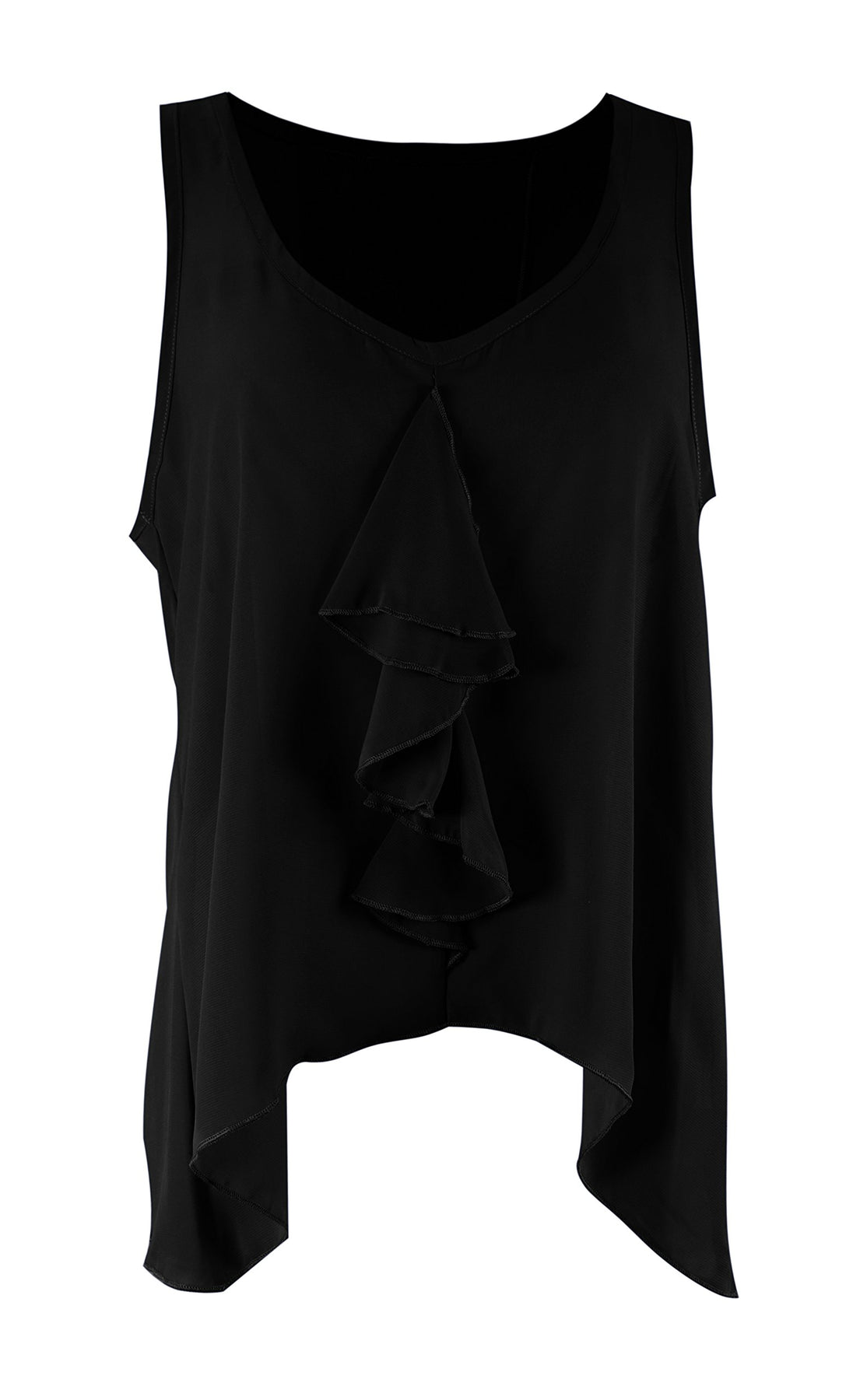 • Trendy blouse featuring fluttery ruffles and a relaxed silhouette.
