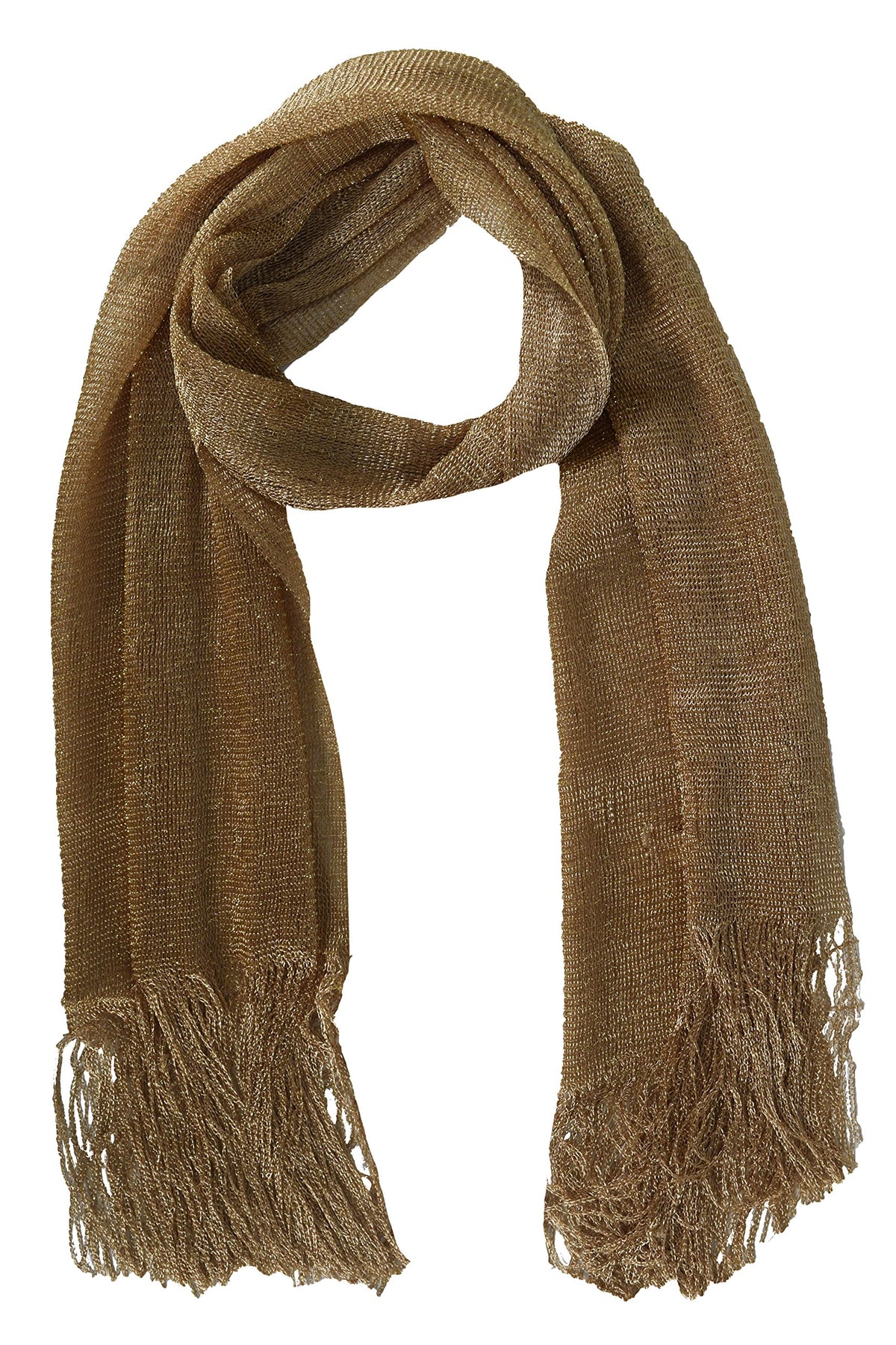Experience the ageless charm and versatility of this metallic shimmer scarf. It gleams beautifully in any light thanks to the meticulous stitching details of its fine polyester material. Its extremely lightweight and sheer quality makes it comfortable for summer heat. Wear it with jeans for a casual style, during an evening stroll, or dressed up for a summer wedding. It's also a delightful accessory for a young girl playing princess or embarking on her fashionista journey. Whatever the age or occasion, this elegant scarf is sure to enhance your look.